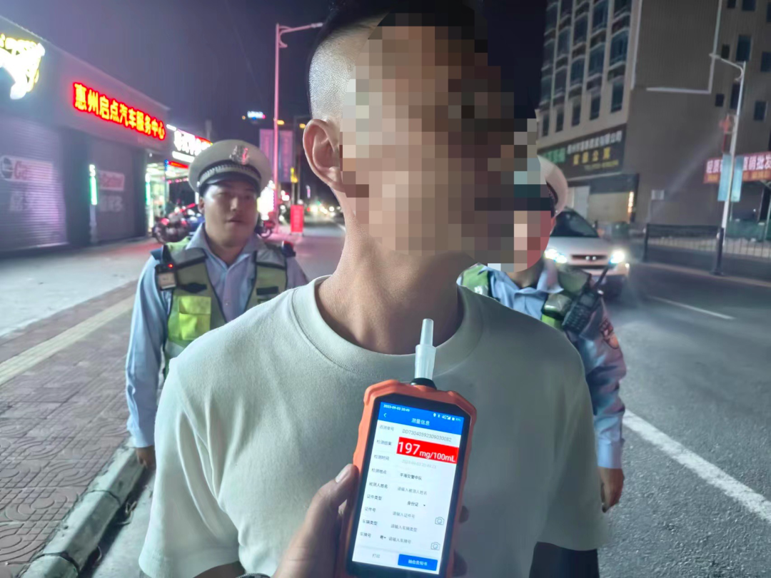 9月5日凌晨,惠東縣公安局交警大隊(duì)在平海萬德福酒店路段設(shè)卡檢查,當(dāng)一輛白色小車的駕駛?cè)藢④嚧敖迪聛頃r(shí),民警聞到了一股濃烈的酒氣。
