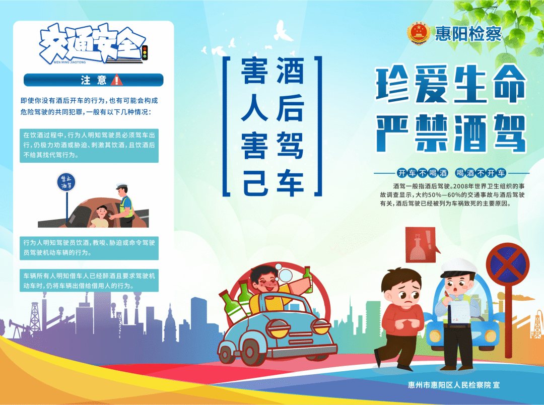 在全國拒絕酒駕日即將到來之際,為貫徹落實(shí)全省檢察機(jī)關(guān)醉駕治理專題會議精神,切實(shí)提升群眾對酒駕醉駕危害的認(rèn)識,從源頭上預(yù)防和減少酒駕醉駕行為,營造起全社會拒絕酒駕、勸阻酒駕的濃厚氛圍,惠州檢察機(jī)關(guān)開展了系列普法宣傳活動。