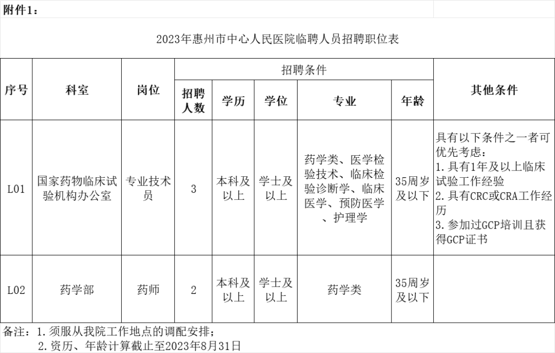 2023年惠州市中心人民醫(yī)院臨聘人員招聘