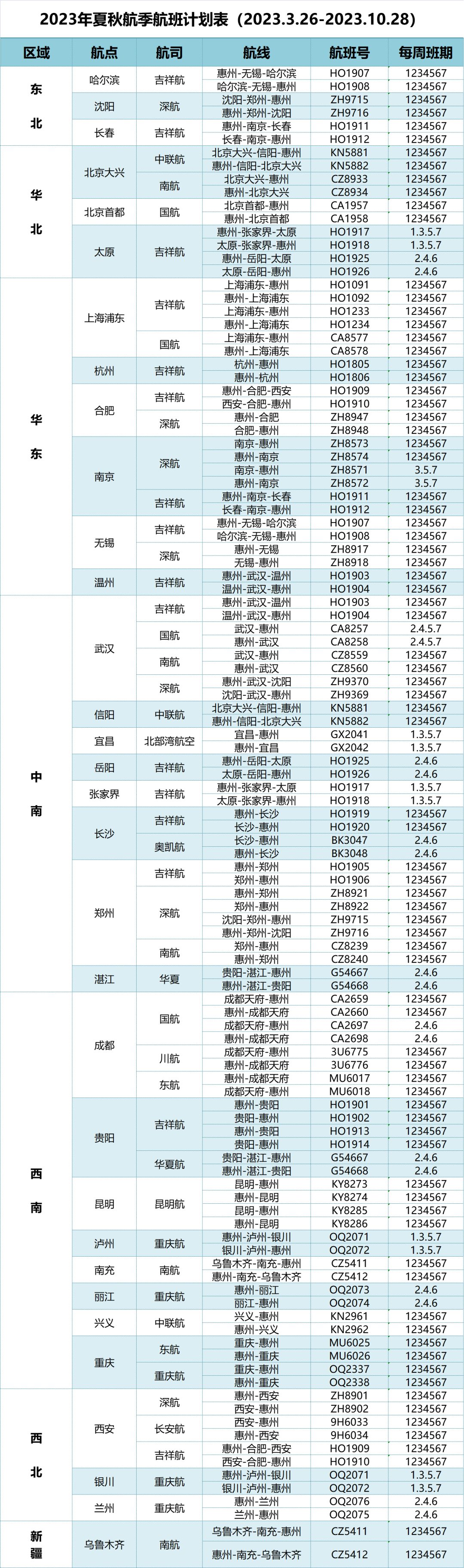 注:具體航班時(shí)刻以航空公司官網(wǎng)公布為準(zhǔn),可掃描惠州機(jī)場微信公眾號進(jìn)行實(shí)時(shí)查詢