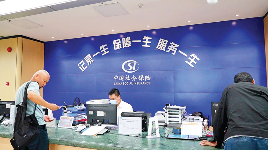 市社保局工作人員在為市民辦理業(yè)務(wù);葜萑請笥浾邨罱I(yè) 攝