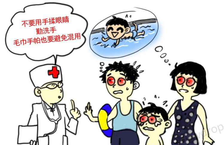 比如接觸患者用過的毛巾、臉盆、玩具,游泳池,共用眼藥水等等。