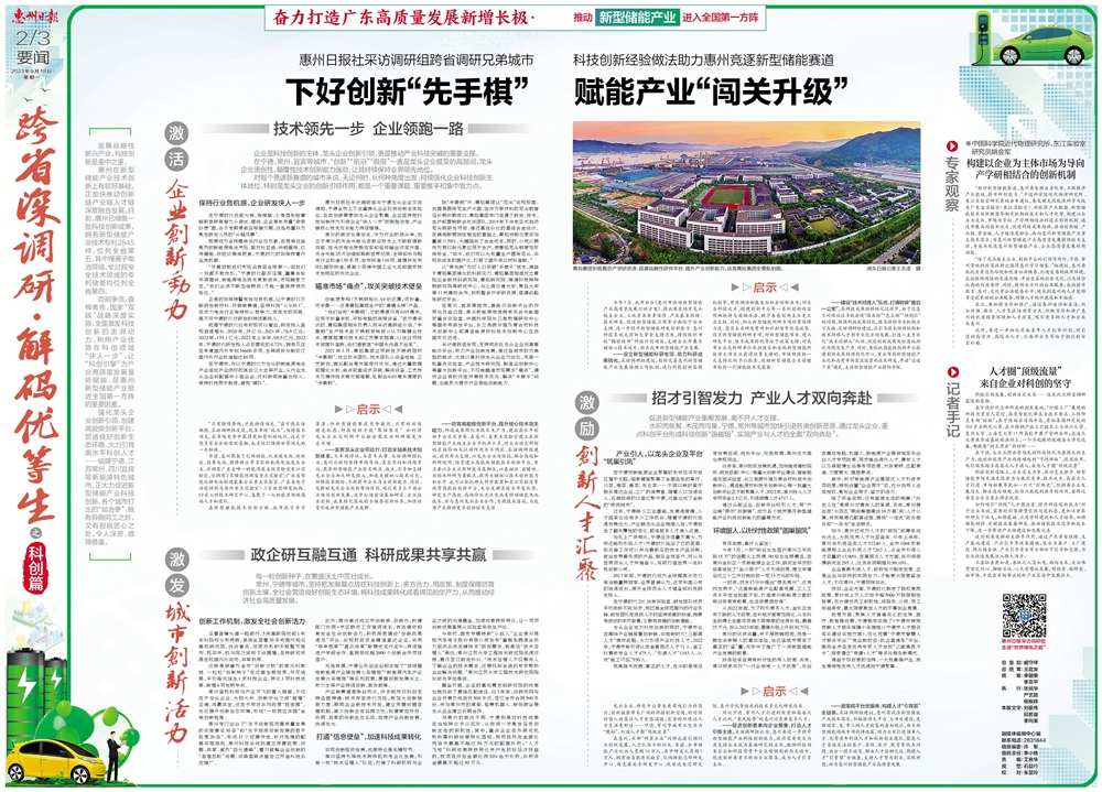 今日《惠州日報》推出“跨省深調研 解碼優(yōu)等生”系列深度報道之科創(chuàng)篇。