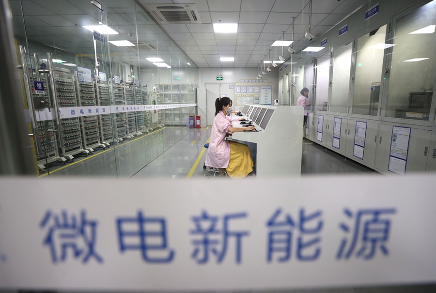 走進(jìn)微電新能源展廳,一面墻上掛滿了專利證書。徐江濤介紹,這只是公司所獲專利的一小部分。該公司當(dāng)前有正式員工近1000人,其中工程師隊伍約300人,在鋰電池領(lǐng)域自主控制全流程的運營鏈條,包括研發(fā)、生產(chǎn)、制造、測試、銷售。