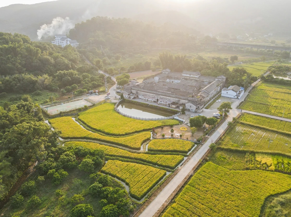 如今,在山清水秀的官山村,每到水稻即將收成的季節(jié)里,青黃相接的稻田與村里百年圍屋拱秀樓相映成趣,好一幅鄉(xiāng)村振興的和美畫面。