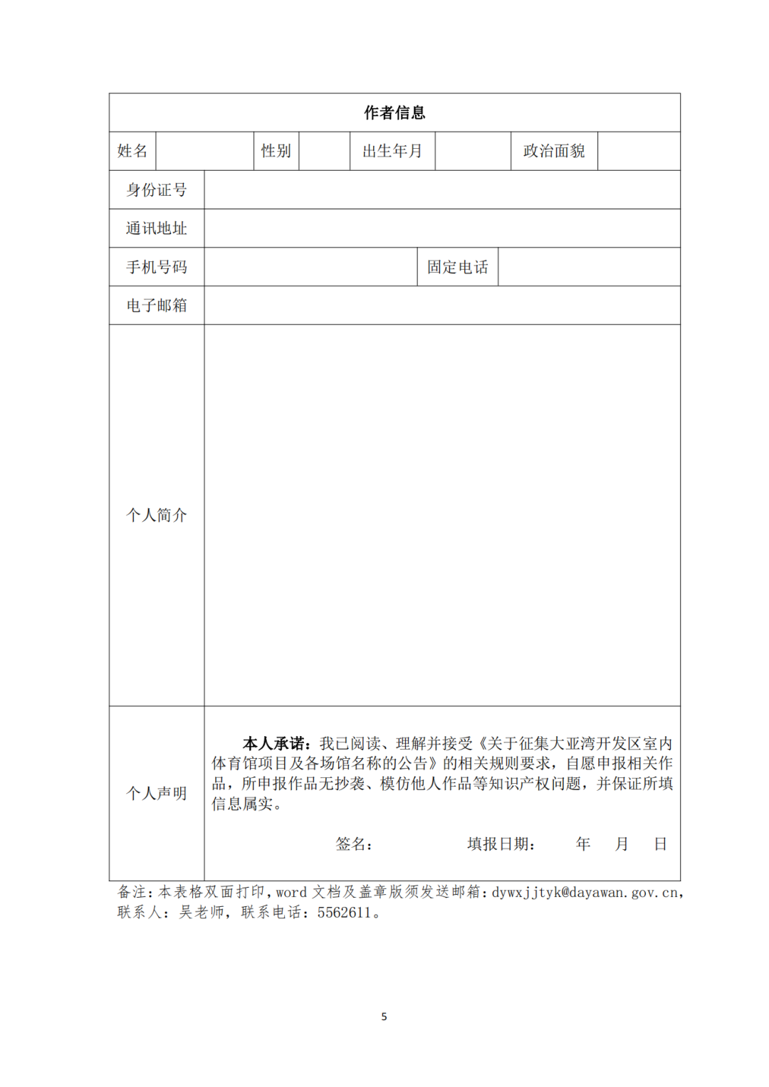 。ㄒ唬┩陡逭咝杼顚憽洞髞啚硡^(qū)室內(nèi)體育館項目及各功能場館名稱命名征集表》,提交電子文檔或紙質(zhì)文檔。
