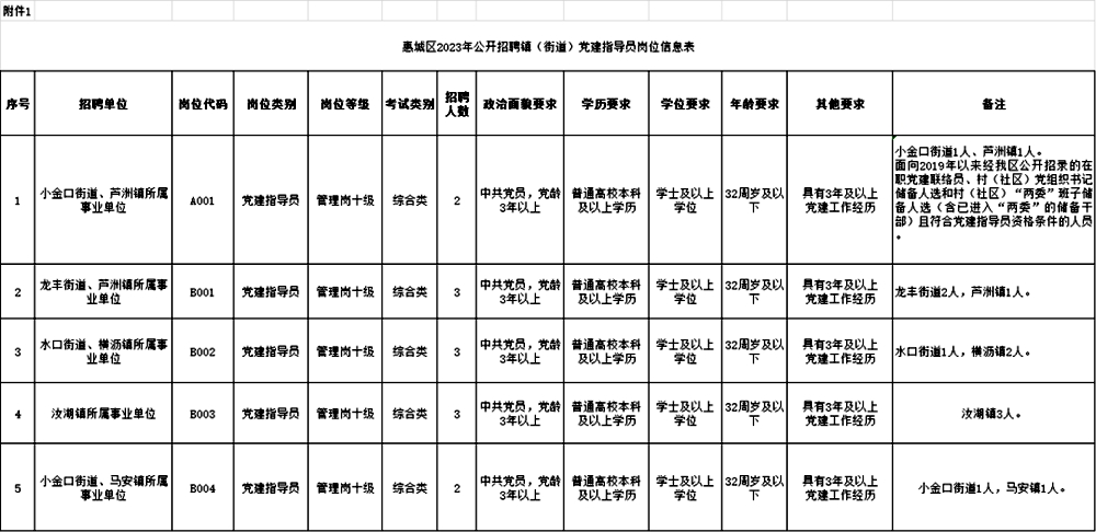 惠城區(qū)2023年公開招聘鎮(zhèn)(街道)黨建指導(dǎo)員