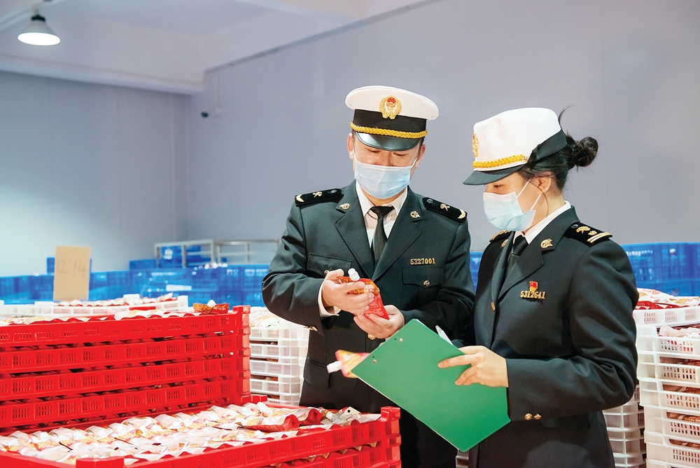 惠州海關(guān)關(guān)員檢查出口產(chǎn)品。惠州日報記者劉煒煒 通訊員王旭 攝