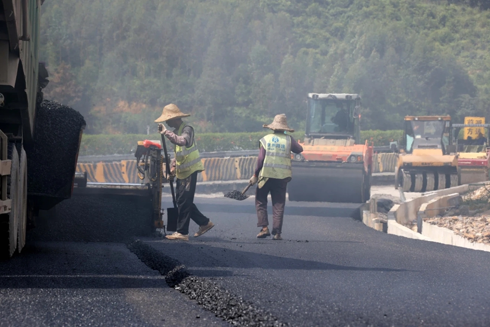 9月29日正值中秋節(jié),在韶惠高速公路龍門至惠州段(以下簡稱“惠龍高速”)建設(shè)沿線,仍然隨處可見繁忙景象:在惠龍高速與廣河高速相交的蘇茅坪樞紐互通,50多名施工人員在進行瀝青路面攤鋪作業(yè),壓路機、攤鋪機的轟鳴聲此起彼伏;在象頭山服務(wù)區(qū),房屋裝飾作業(yè)井然有序;路肩旁,防護欄、交通指示牌安裝工作緊鑼密鼓地進行……各工序施工如火如荼,共同構(gòu)成了金秋最美麗的風(fēng)景。