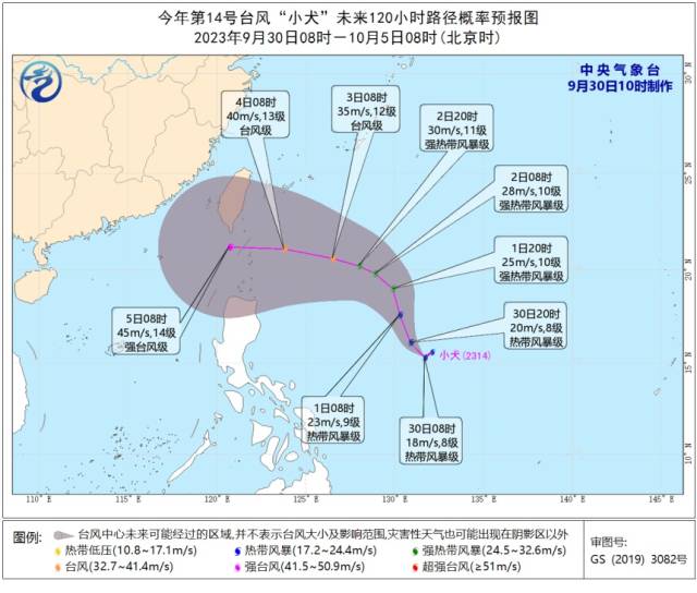 預(yù)計(jì),“小犬”將以每小時(shí)10至15公里的速度向西北方向移動(dòng),強(qiáng)度逐漸增強(qiáng),10月2日開(kāi)始轉(zhuǎn)向偏西方向移動(dòng),逐漸向臺(tái)灣島南部一帶沿?拷。按現(xiàn)有預(yù)報(bào)路徑,假期末期至復(fù)工初期,“小犬”或影響我國(guó)沿海地區(qū)。