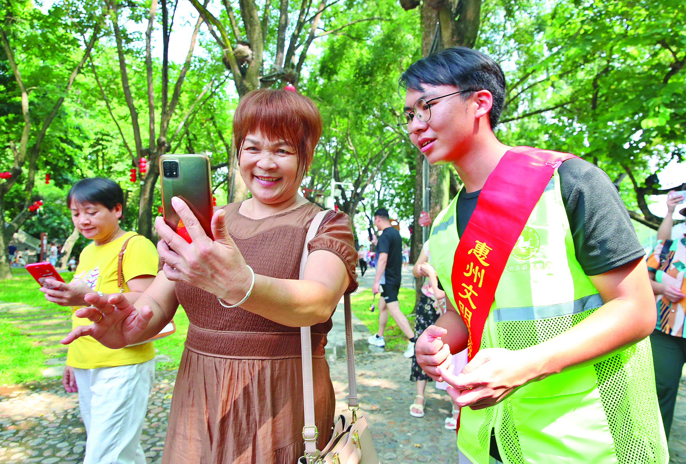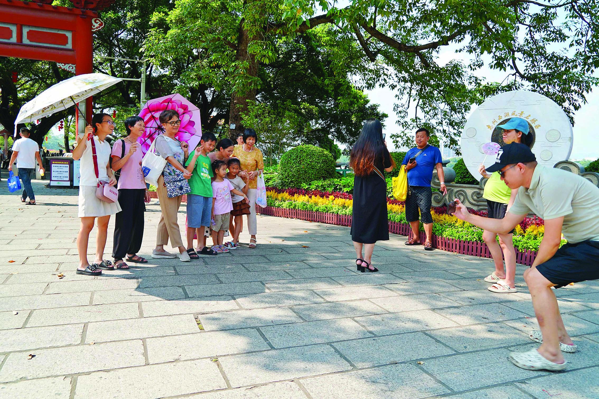游客在惠州西湖開心合影。 惠州日報記者李松權 張藝明 鐘暢新 黃鑫威 羅劍業(yè) 陳濤 攝