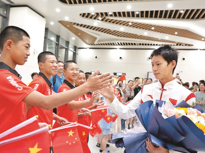 自信、陽光、帥氣!10月3日下午6時許,陳燁剛走出惠州機場出站口,就受到大家的熱烈歡迎!胺浅i_心,激動。沒有人跟我說過,非常開心有這么多人過來。”接過鮮花后,陳燁與教練、隊員們一一擊掌慶賀,并與大家一起合影留念。
