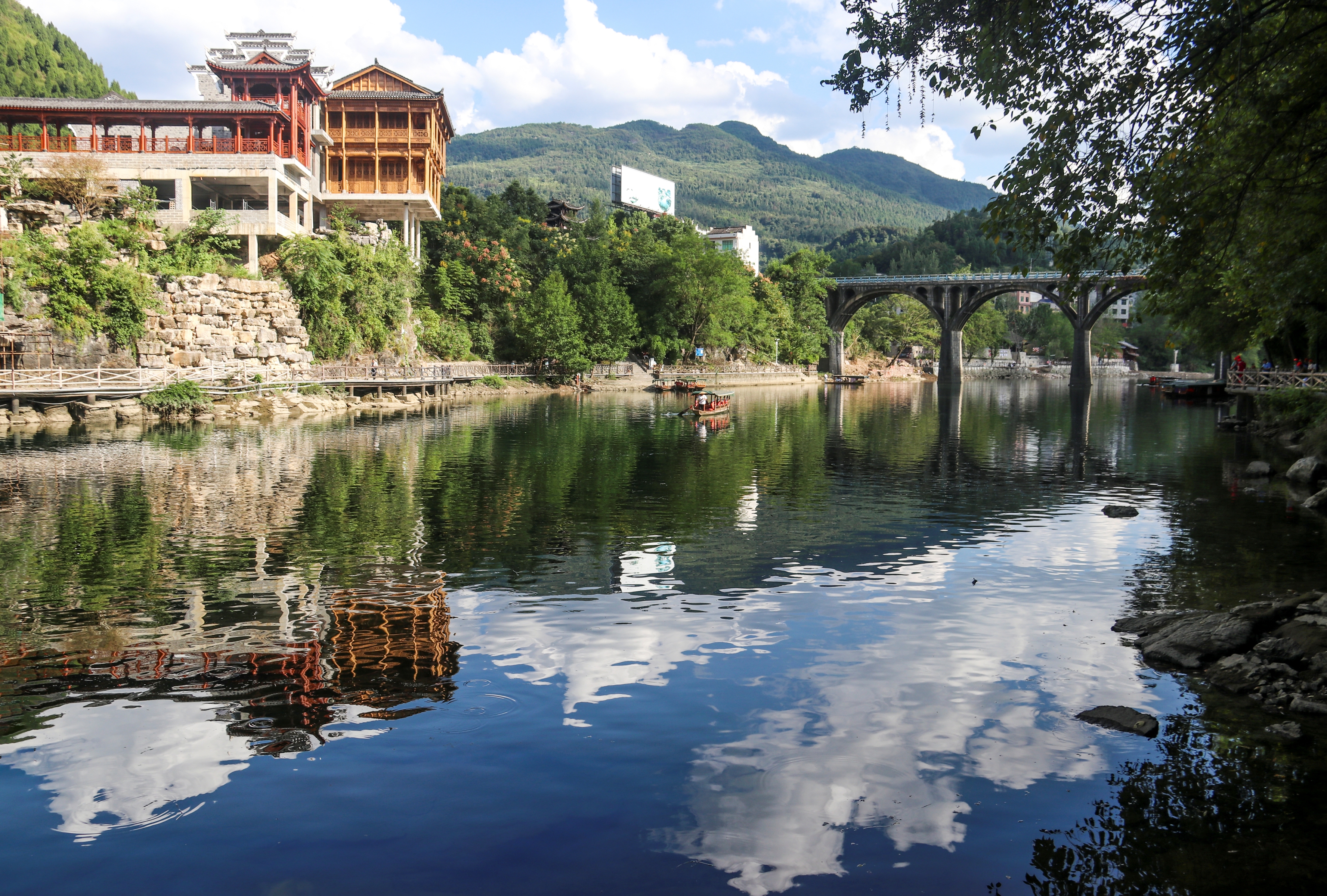 5天時(shí)間,團(tuán)友們游覽了自然風(fēng)光極度唯美的屏山峽谷和神龜峽風(fēng)景區(qū);看了古香古色的隆里古鎮(zhèn)和黔陽古城,仔細(xì)品讀古鎮(zhèn)里上百年的古建筑,深入了解當(dāng)?shù)氐娘L(fēng)土人情;去了“世間男子不二心,天下女兒第一城”的中國恩施土家女兒城;到了一腳踏三省的邊城茶洞景區(qū),參觀了極具特色的濯水風(fēng)雨廊橋和三江風(fēng)雨橋,這些風(fēng)雨橋都是以杉木為主要建筑材料,建橋時(shí),不用一顆鐵釘,只在柱子上鑿?fù)o數(shù)大小不一的孔眼,以榫銜接,斜穿直套,親身感受這些中國古建筑的精妙,感嘆古人的智慧。