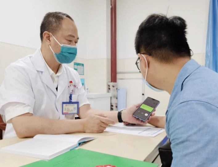 醫(yī)生用手機(jī)與聽(tīng)障人士溝通交流。(資料圖)