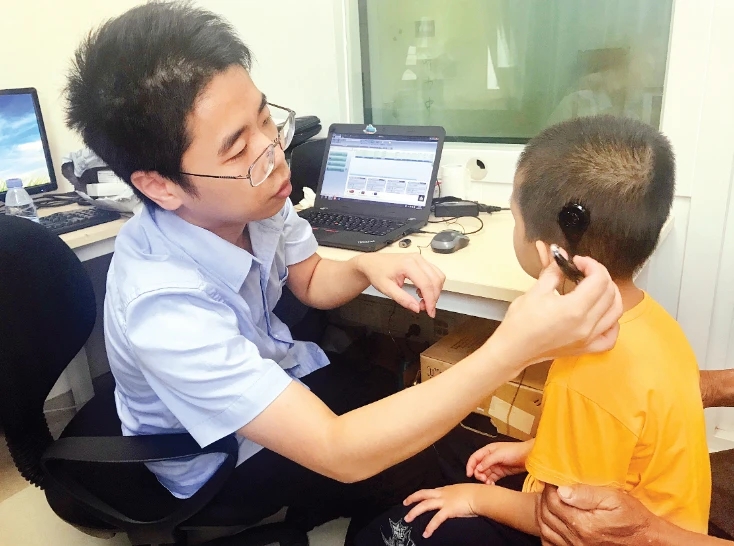 醫(yī)務(wù)人員為聽(tīng)障兒童植入的人工耳蝸開(kāi)機(jī)。(資料圖)
