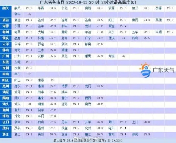 11日,奪得廣東最高氣溫排名第一的是