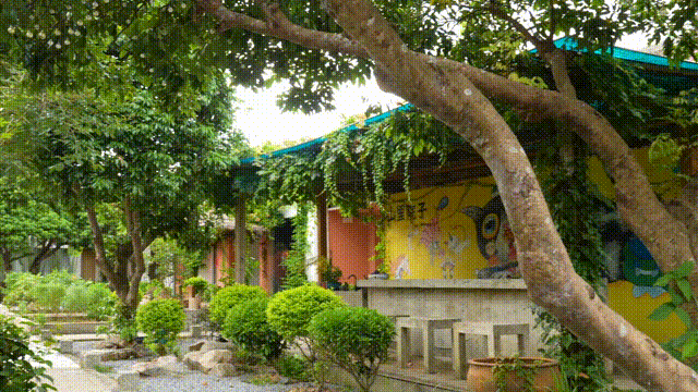 這間民宿是用鎮(zhèn)內(nèi)以前的小學(xué)改造而成,如Phil所說,屋頂是用傳統(tǒng)的中國建筑材料——瓦片制作而成,因此當(dāng)旅客進(jìn)入房間時,一股清涼的氣息便撲面而來,可以瞬間將身上的燥熱一掃而空。在夜間,你甚至可以不開空調(diào)。