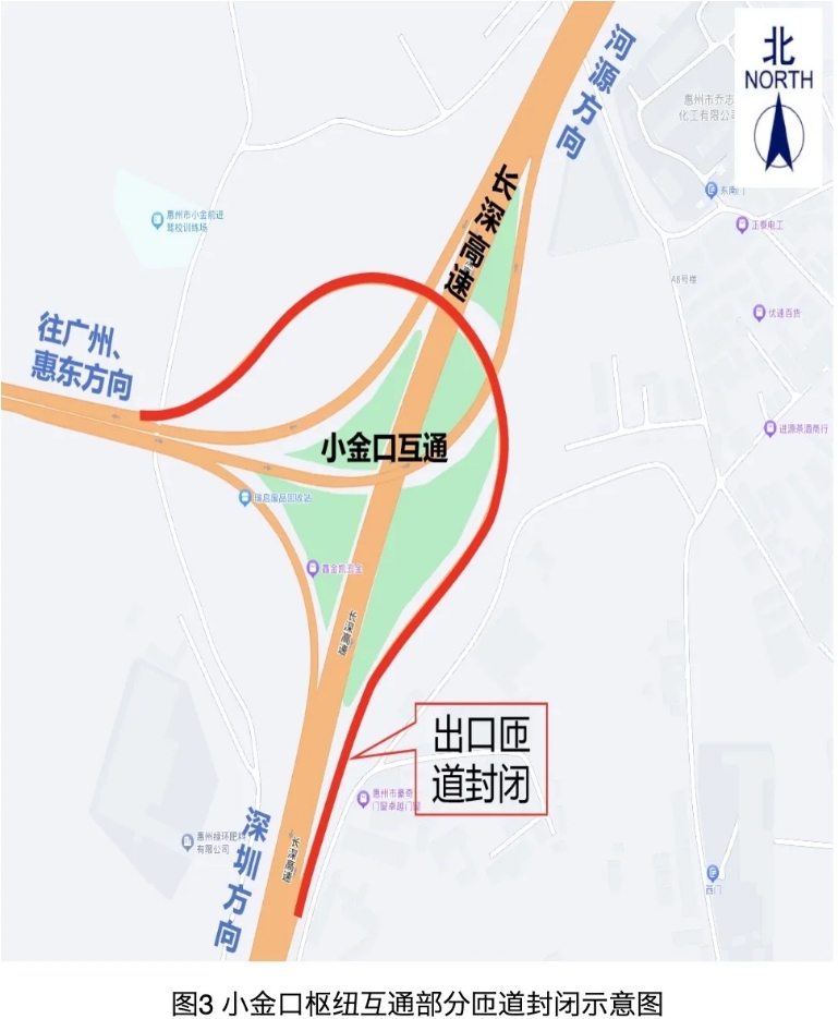 其中,今年10月15日至明年6月15日,長(zhǎng)深高速惠州段(惠河高速)惠州西收費(fèi)站南往北方向出口匝道封閉,禁止車輛通行;今年10月15日至明年2月7日,長(zhǎng)深高速惠州段(惠河高速)泰美收費(fèi)站北往南方向出口匝道封閉,禁止車輛通行;今年10月15日至明年2月7日,長(zhǎng)深高速惠州段(惠河高速)小金口樞紐互通南往北方向出口匝道封閉,禁止車輛通行。