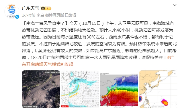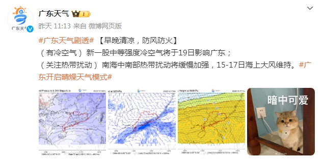 新一股中等強(qiáng)度冷空氣將于10月19日左右影響廣東,下周三開始,氣溫有所下降并有降雨,大家可以趁這幾天晴燥的日子抓緊洗曬。