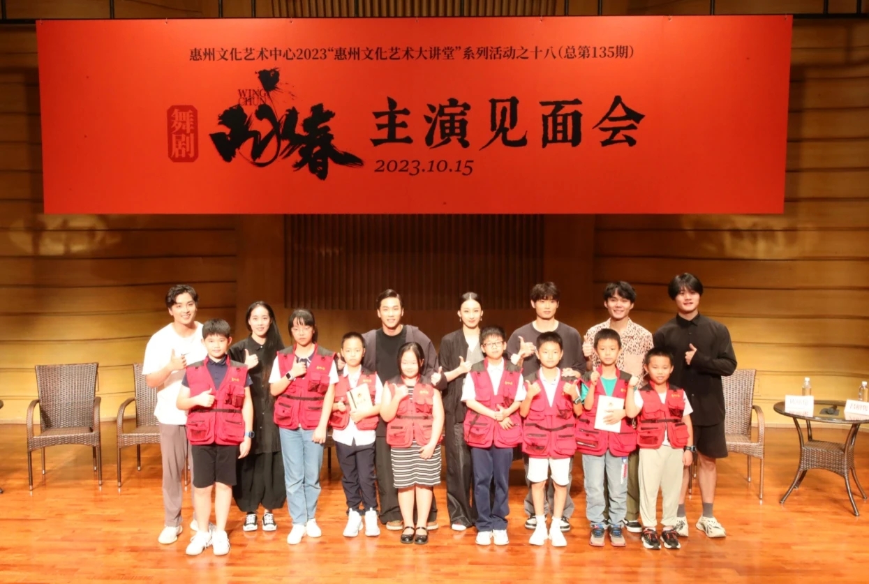 惠州日報訊 (記者譚琳)10月15日下午,備受惠州市民喜愛的舞劇《詠春》劇組在惠州文化藝術(shù)中心舉辦主演見面會。李監(jiān)庭(豬肉榮扮演者)、馮浩然及陳席倫(大春扮演者)、常宏基(葉問扮演者)、呂程亮(導(dǎo)演扮演者/八卦掌掌門扮演者)、許天慧(永成扮演者)和呂紹雋(過江龍扮演者)與惠州市民分享了舞劇臺前幕后的故事。