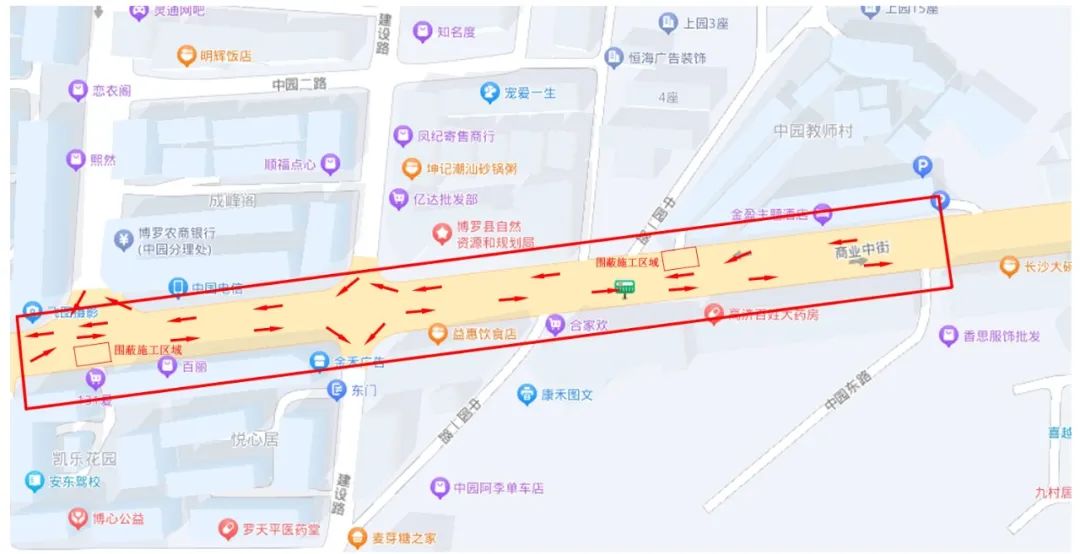 因市政排水管網(wǎng)施工建設(shè)需要,為保證工程順利施工和施工期間道路交通安全,需要對博羅縣城商業(yè)中街中園教師村小區(qū)門口段,商業(yè)中街凱樂花園小區(qū)門口段進行單向圍閉,施工時間為即日起至2023年11月10日,封閉期間過往車輛和行人請繞行。