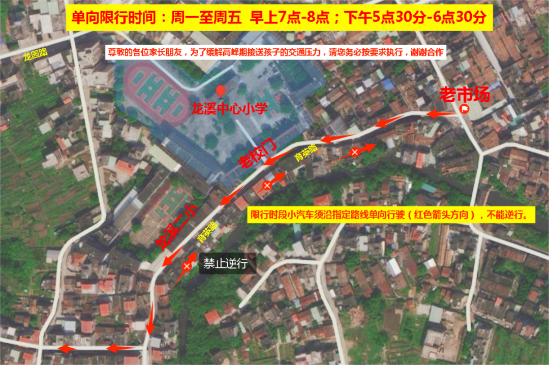 育英路(龍溪中心小學(xué)老校門、第二小學(xué))路段限時單向行駛