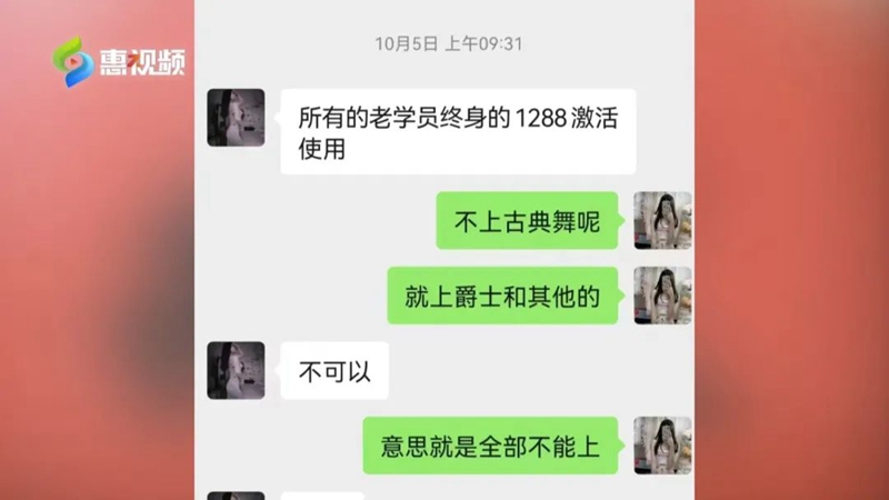 舞蹈店新負(fù)責(zé)人 黃女士:“交1288元,我們繼續(xù)學(xué),該怎么學(xué)我們還是怎么學(xué),就沒有什么限制。那如果說想退費(fèi),她們是需要找到之前收到她們錢的盧女士退!