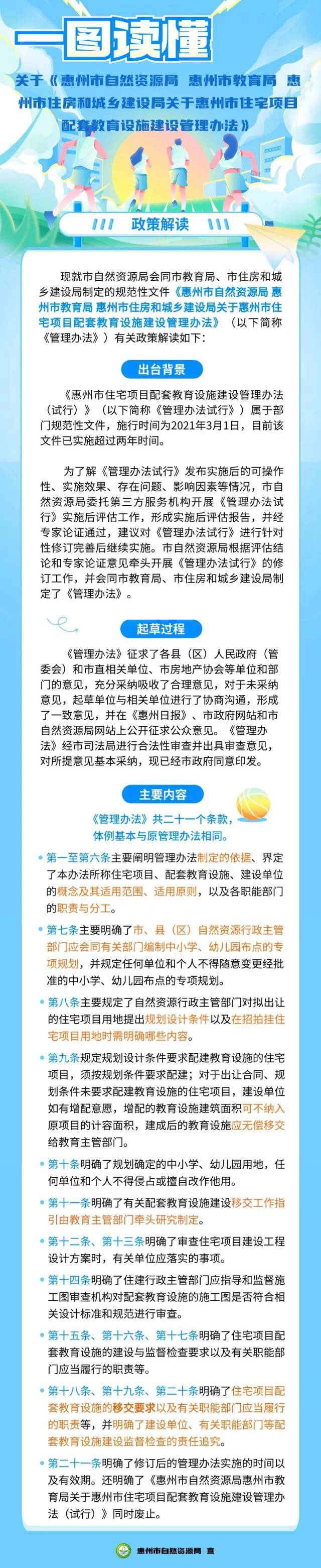 2021年,《惠州市住宅項(xiàng)目配套教育設(shè)施建設(shè)管理辦法(試行)》正式實(shí)施,截至目前已試行三年。在此基礎(chǔ)上,我市新出臺(tái)的《管理辦法》進(jìn)一步規(guī)范我市住宅項(xiàng)目配套教育設(shè)施的規(guī)劃、建設(shè)、移交與管理等行為,完善和優(yōu)化教育資源配置,保障適齡兒童和少年就近入學(xué)。