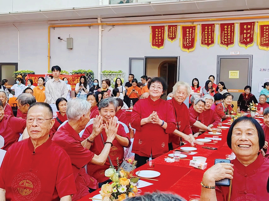 欣賞表演的同時,工作人員還為老人們送上茶點,有滋潤的龍眼雪梨水,清甜的紅豆豆腐花羹,可口的長壽面……老人們談笑風生,吃得津津有味,他們相互慶賀、彼此祝福,臉上洋溢著對美好生活的憧憬。