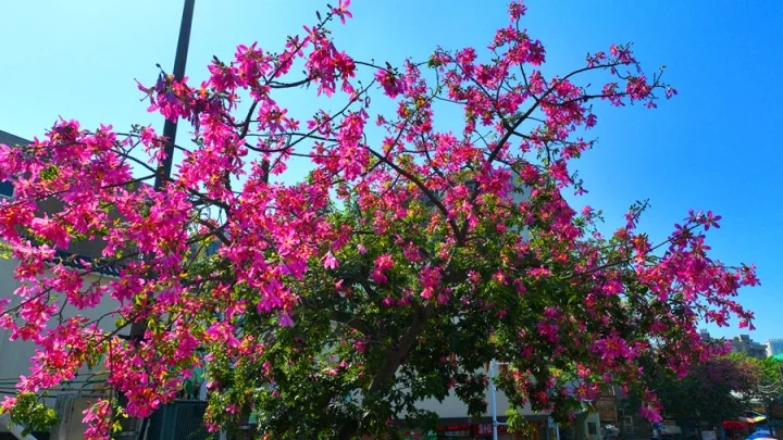 10月19日,惠城區(qū)橋東市場(chǎng)街道旁種植的美麗異木棉進(jìn)入盛花期,粉色花朵成老城區(qū)一景。美麗異木棉亭亭玉立,粉色花朵綴滿綠色的枝頭,一朵朵繽紛絢爛,酷似紫荊,煞是好看。美麗異木棉的花期跨度很長(zhǎng),每年10月至12月是它開(kāi)得最熱鬧的時(shí)候,眼下正是盛花期。
