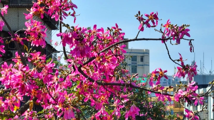 惠城區(qū)橋東市場(chǎng)附近街道的異木棉迎來(lái)盛花期。