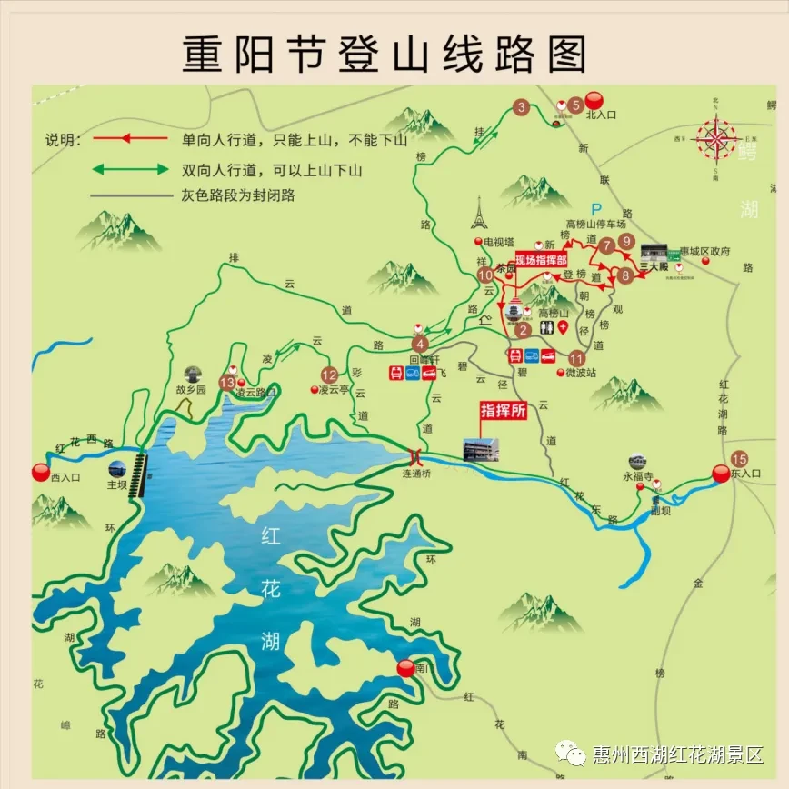 (六)高榜山車行道以及紅花湖往高榜山方向的車行道、登山步道均可雙向通行;