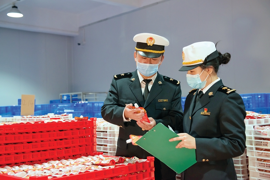 惠州海關(guān)關(guān)員檢查出口產(chǎn)品;葜萑請笥浾邉槦 通訊員張鳴亞 攝