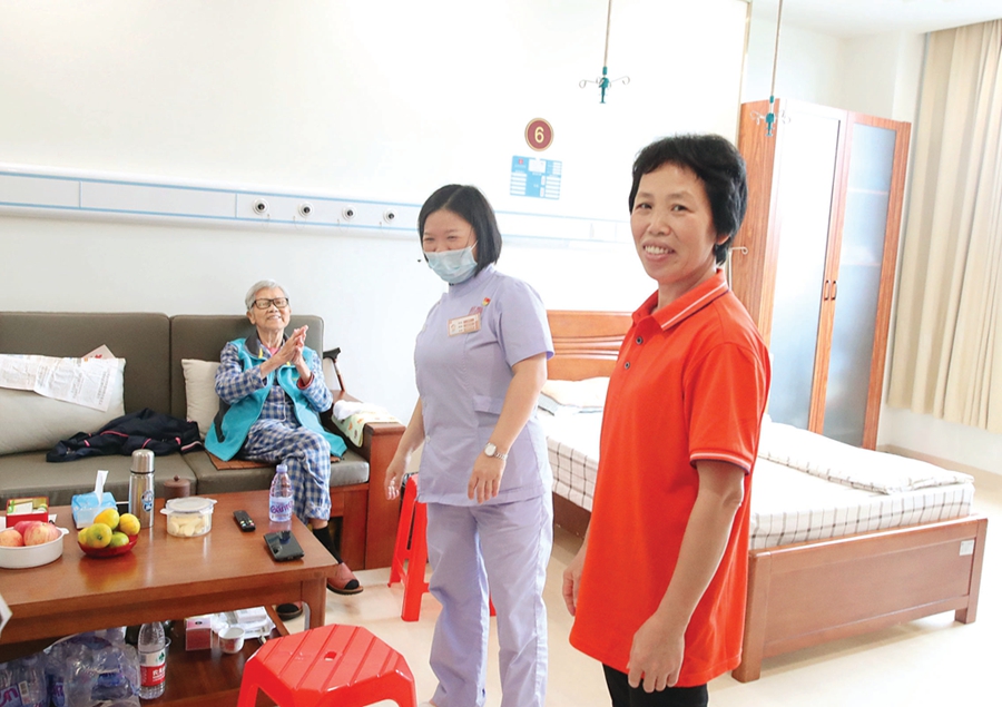 惠州一家養(yǎng)護院的護工與老人聊天;葜萑請笥浾哏姇承 攝