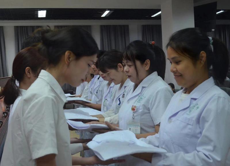 醫(yī)院藥師為新生莊重“授袍”。