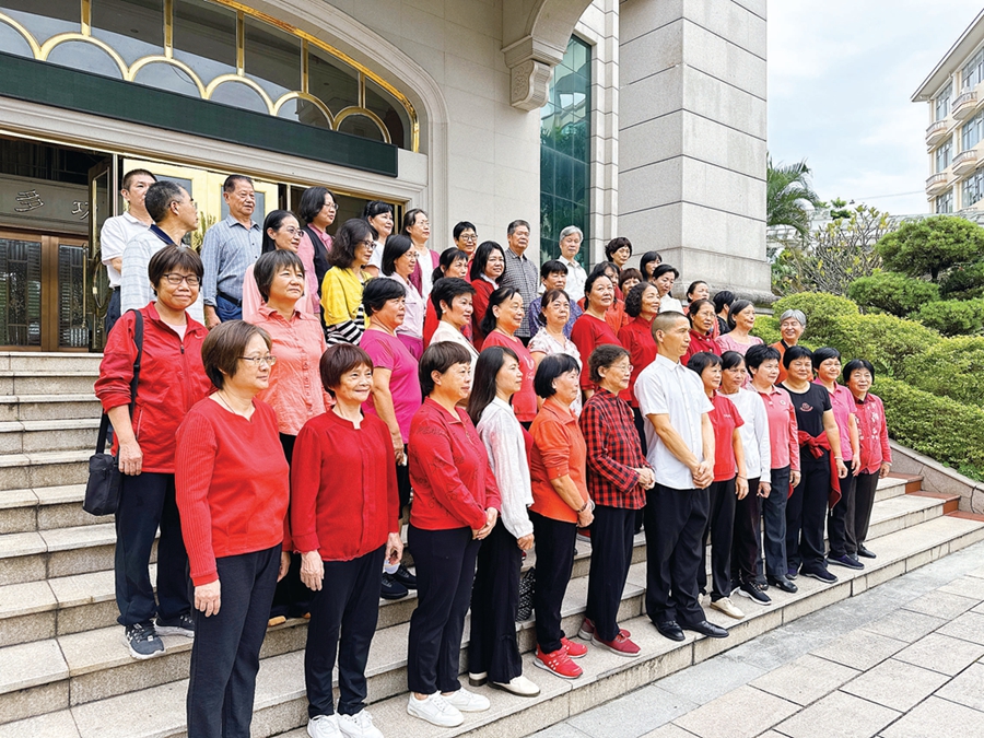 除了個人形象照,還有部分“老同學(xué)”也一起拍了大合照!拔覀円黄鹕狭3年課,還沒有拍過一張合影呢!被葜菔欣细刹浚ɡ夏辏┐髮W(xué)中醫(yī)經(jīng)絡(luò)提高班的班長翁佩群說,班上一共有60多名同學(xué),但大家一般上完課就各自離開了,而且大多是六七十歲的人了,想要拍合影也不容易!盎葜萑請(bào)社組織的這次免費(fèi)拍攝活動,對我們班來說,就是重陽節(jié)最好的禮物。”