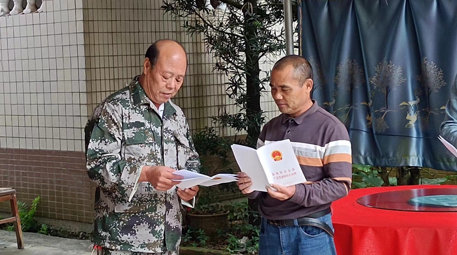市林業(yè)部門工作人員走村入戶開(kāi)展《惠州市野外用火管理?xiàng)l例》宣傳。