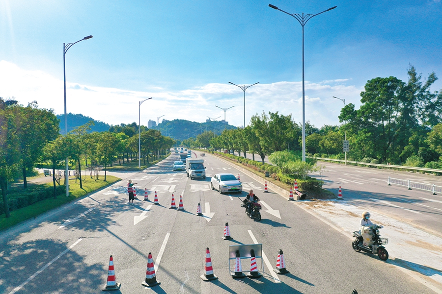 惠博大道保持單邊雙向通行;葜萑?qǐng)?bào)記者哈鵬 攝