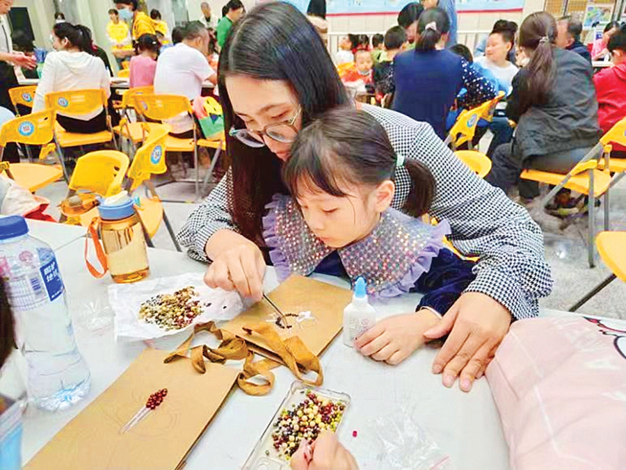 家長(zhǎng)帶孩子體驗(yàn)中醫(yī)藥文化;葜萑?qǐng)?bào)記者劉豪偉 通訊員葉淑瓊 攝