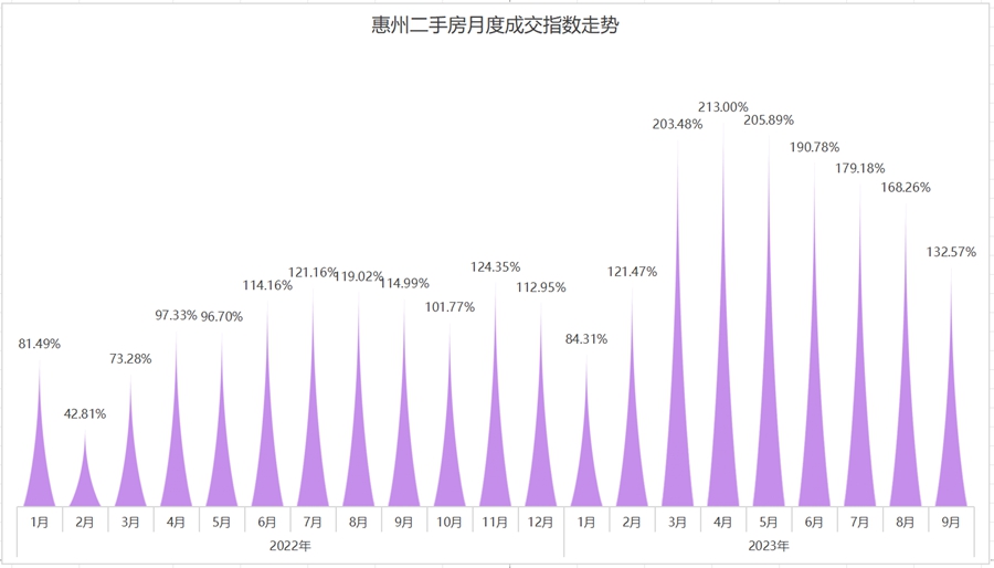 貝殼官網(wǎng)數(shù)據(jù)顯示,截至2023年10月24日,惠州二手房掛牌量高達(dá)77698套。大量房源涌入市場,對二手房交易走勢產(chǎn)生一定影響,今年的二手房成交指數(shù)明顯好于去年。與此同時(shí),由于二手房房源充足,部分急于出售的業(yè)主低于市場價(jià)掛牌,為有購房需求的買家提供了更多選擇和議價(jià)空間。