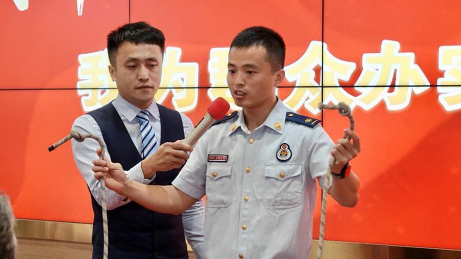 消防員志愿者開展消防知識科普宣講。