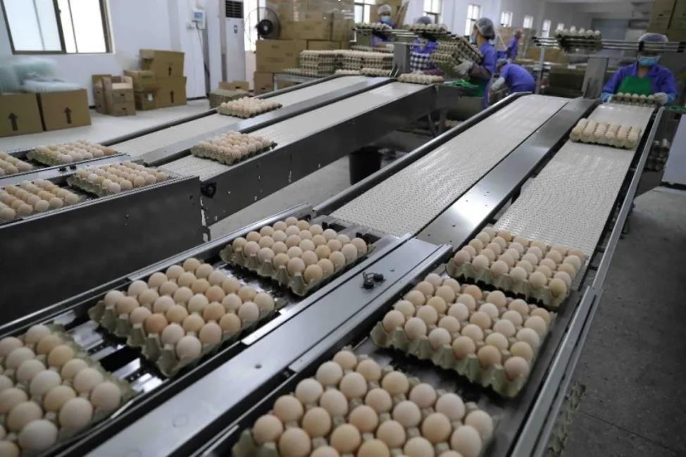 蛋雞剛生產(chǎn)的雞蛋立即通過輸送帶直接進(jìn)入車間。