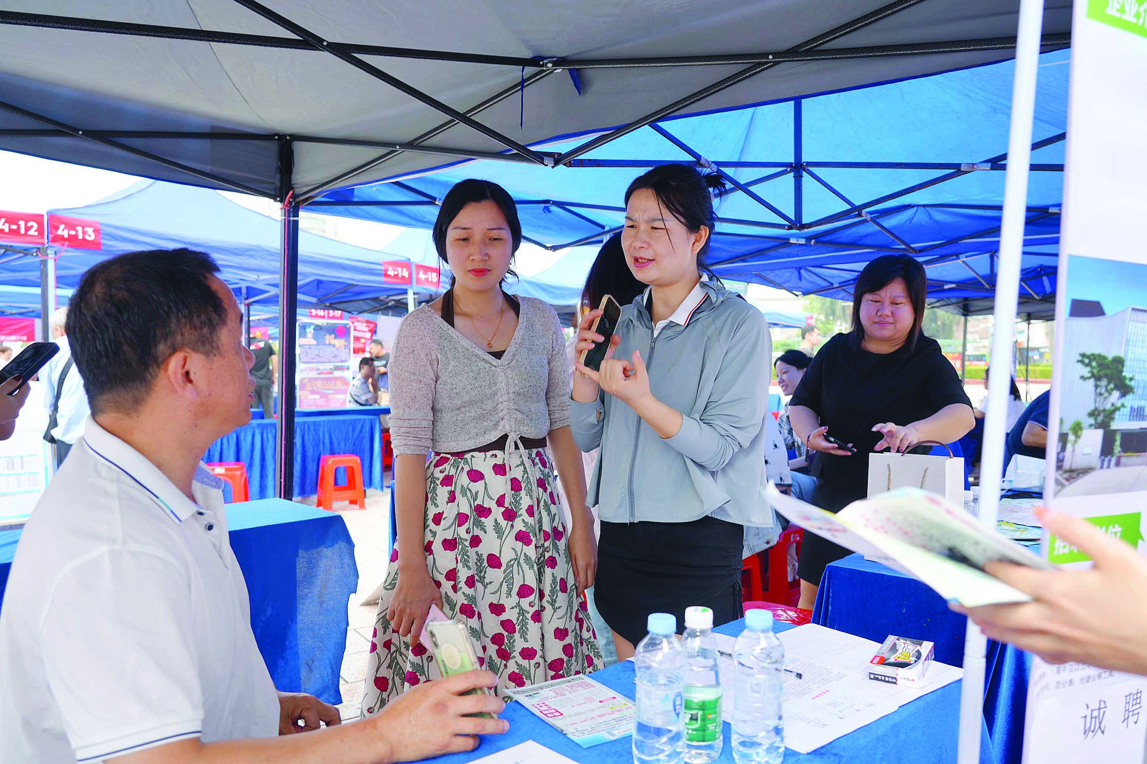 求職者向企業(yè)了解招聘信息。 惠州日?qǐng)?bào)記者楊建業(yè) 攝
