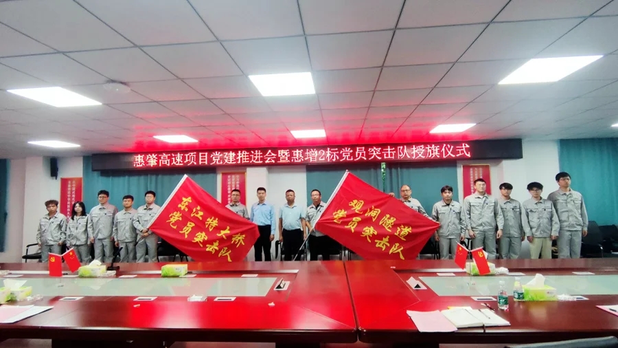 在當(dāng)天的授旗儀式上,惠州市一號公路項目聯(lián)合黨委專職副書記鄧秉文和許賢平分別為兩支黨員突擊隊授旗,鼓勵黨員突擊隊要爭先創(chuàng)優(yōu)、干事創(chuàng)業(yè),助力項目建設(shè)跑出“加速度”。鄧秉文表示,通過項目攻堅黨員突擊隊,要帶動打造一支敢擔(dān)當(dāng)、重實干、能戰(zhàn)斗的項目黨員隊伍,示范帶動全體項目黨員、項目工人齊心協(xié)力攻堅克難。