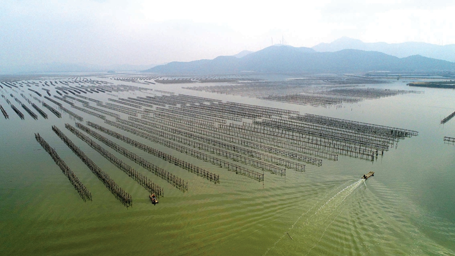 惠東縣鐵涌鎮(zhèn)赤岸村的連片蠔排迎來(lái)收獲季節(jié);葜萑?qǐng)?bào)記者楊建業(yè) 攝