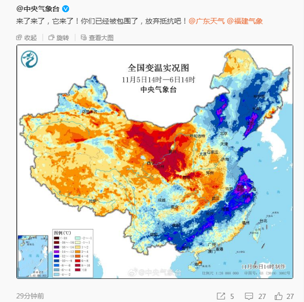 進(jìn)入11月,影響我國的冷空氣活動(dòng)逐漸趨于頻繁。