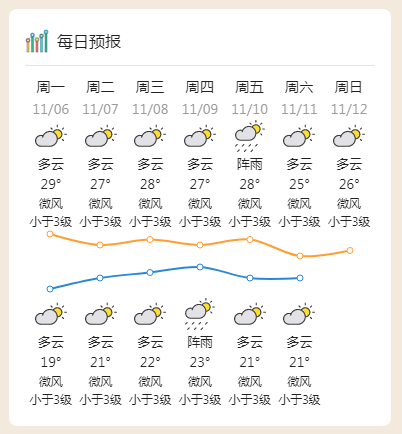 周五,陰天到多云,偶有零星小雨,22~28℃;