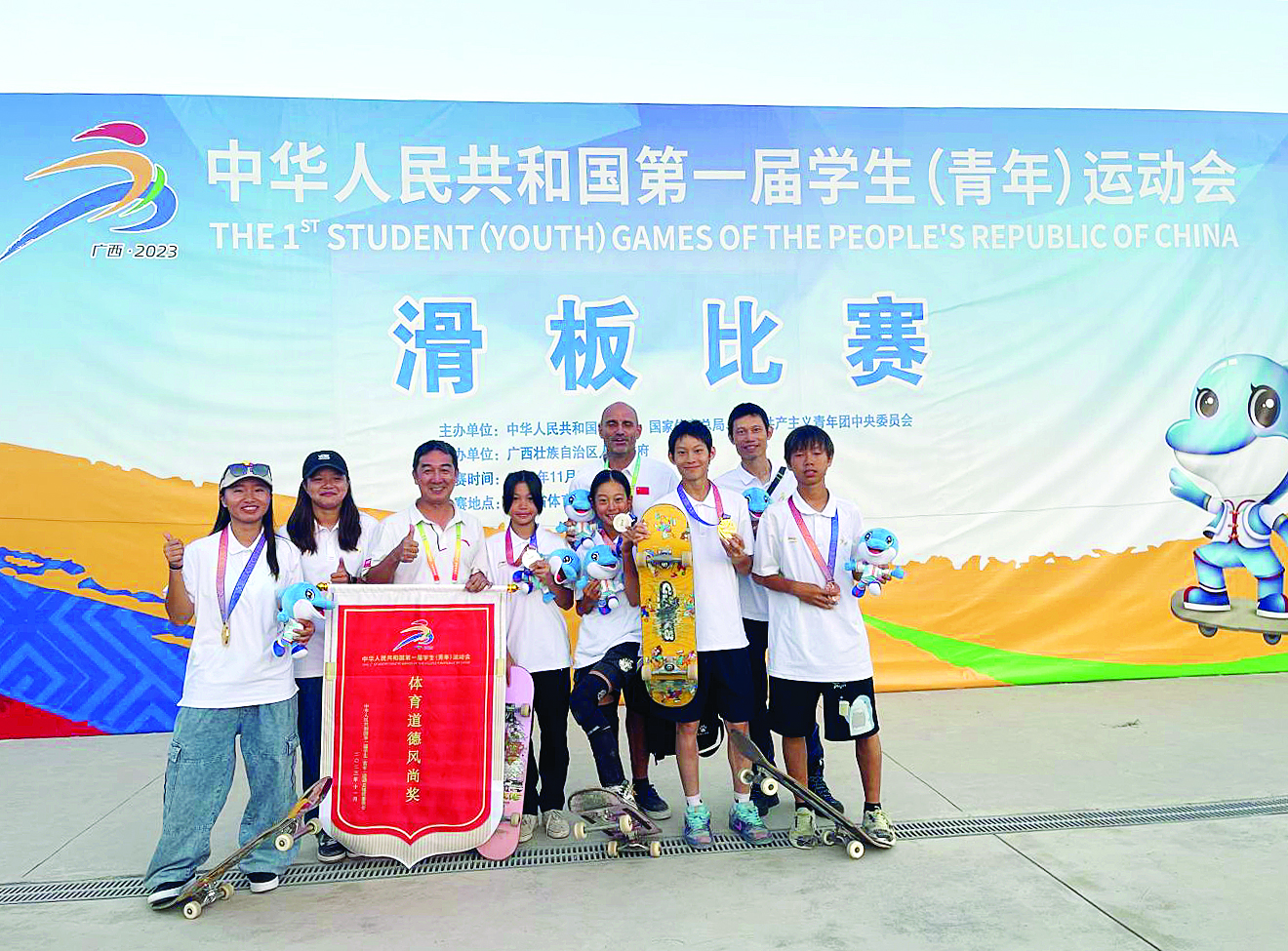 惠州日?qǐng)?bào)訊 (記者龔妍 譚琳)11月3日至4日,全國(guó)第一屆學(xué)生(青年)運(yùn)動(dòng)會(huì)滑板項(xiàng)目決賽在廣西北海舉行。由廣東省體育局與惠州市文化廣電旅游體育局共建的廣東省滑板隊(duì)派出6名運(yùn)動(dòng)員代表廣州市參賽,經(jīng)過(guò)兩天的激烈角逐,共收獲兩金兩銀一銅、一個(gè)第八的優(yōu)異成績(jī),成為賽事最大贏家!其中曾文蕙獲得女子街式金牌,陳燁獲得男子碗池金牌,鄭好好獲得女子碗池銀牌,朱沅鈴獲得女子街式銀牌,鄭樂(lè)謙獲得男子碗池銅牌,朱欣彤獲得女子碗池第八名。