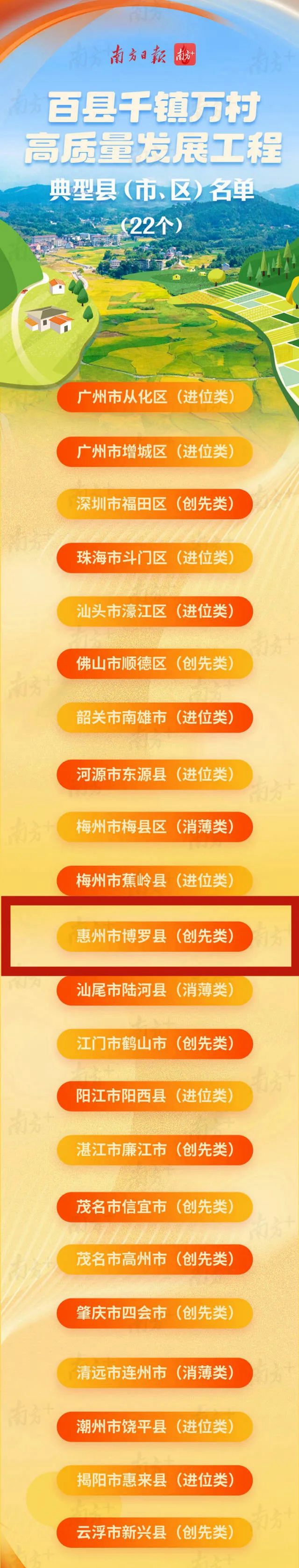 今年以來,博羅把“百千萬工程”作為頭號工程,以高質(zhì)量發(fā)展和走在前列為目標,扛起作為全省縣域經(jīng)濟“排頭兵”的責任擔當,以在全國百強縣競爭中爭先進位的決心,腳踏實地、真抓實干,全縣經(jīng)濟發(fā)展提速提質(zhì)、向上向好。在2023賽迪百強縣榜單,博羅以全國第69位的排名上榜,排名比去年提升12位。