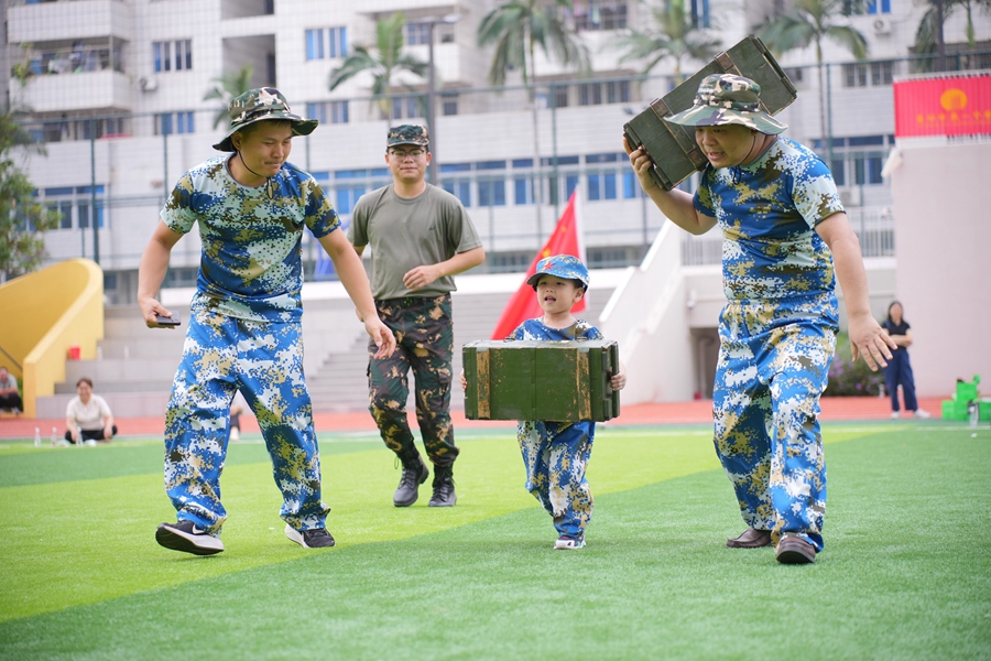 這場(chǎng)別具一格的國(guó)防主題親子運(yùn)動(dòng)會(huì),給參與的家庭留下了美好的回憶,為孩子們的童年添上了精彩一筆!巴媪艘幌挛,真是難得的親子時(shí)間。我沒想到孩子已經(jīng)力氣這么大了!眲⑾壬膬鹤釉诨葜菀恢兄賽鹦^(qū)三年級(jí)就讀,他認(rèn)為運(yùn)動(dòng)會(huì)的舉辦,有效加強(qiáng)了親子互動(dòng),增進(jìn)了親子感情,更讓熱愛祖國(guó)、保衛(wèi)家園的小小愿望在孩子們心中扎根,他們將向著更高、更遠(yuǎn)的目標(biāo)邁進(jìn)。